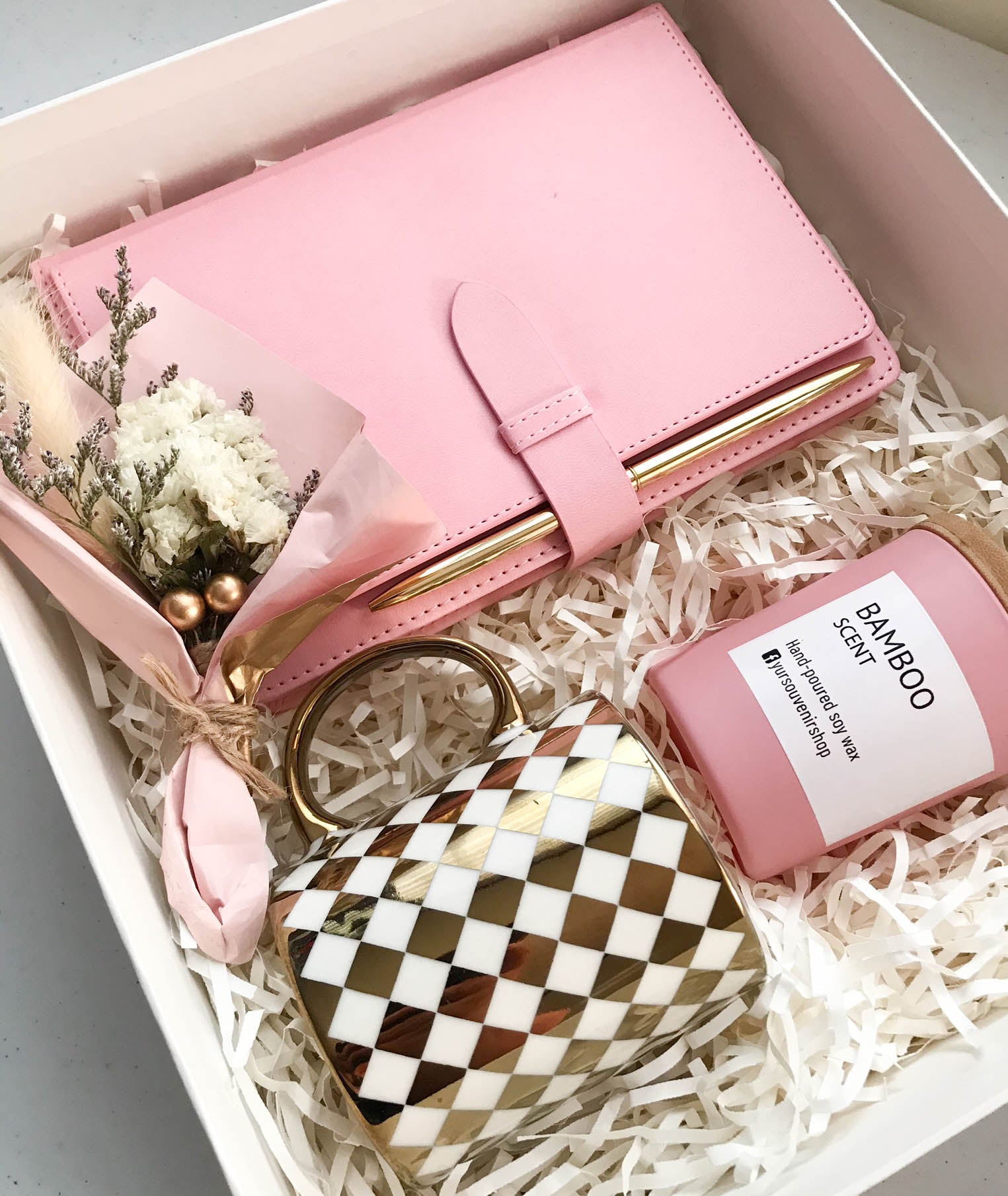 Notebook, Pen, Ceramic Gold mug & scented soy candle