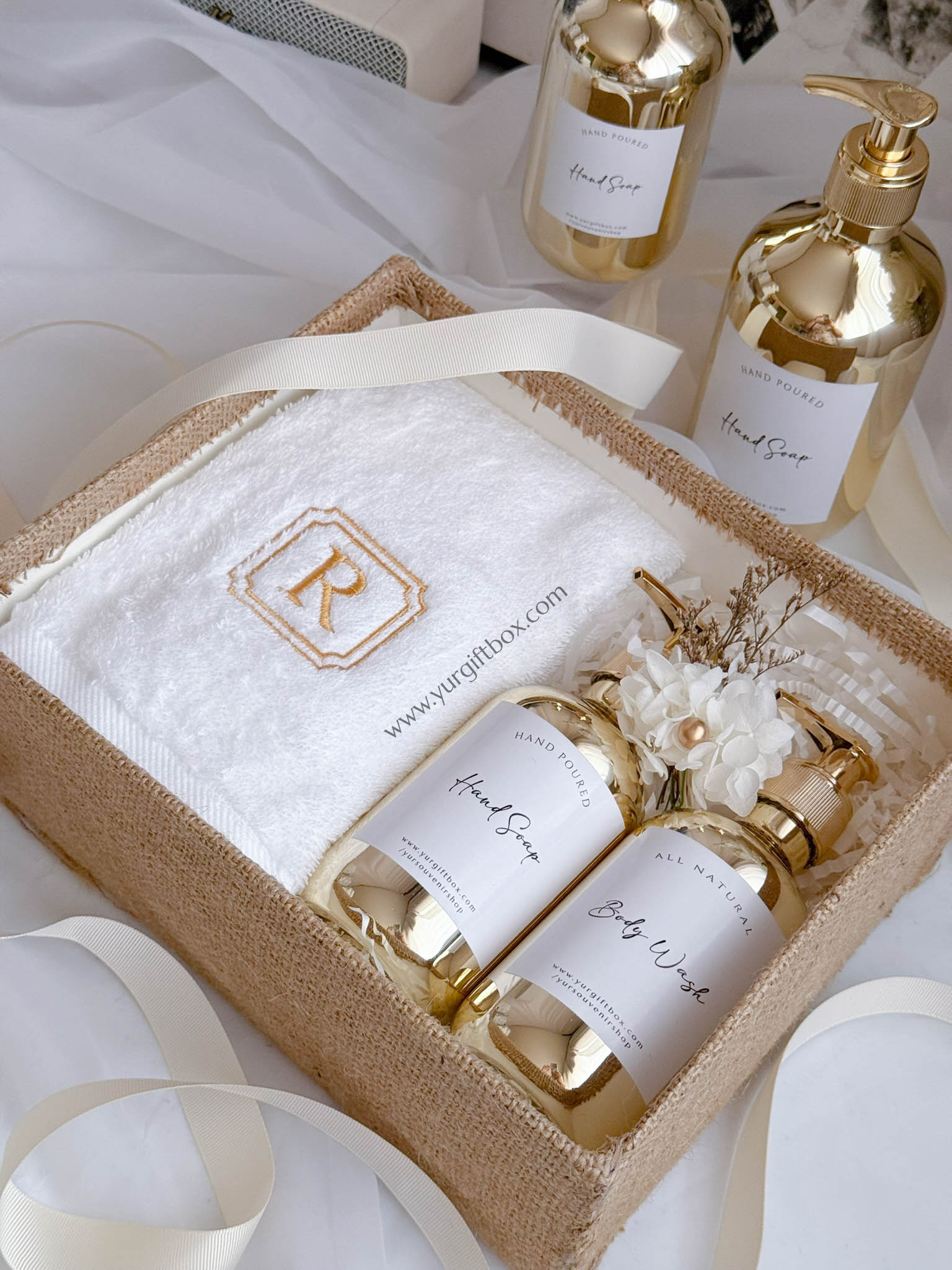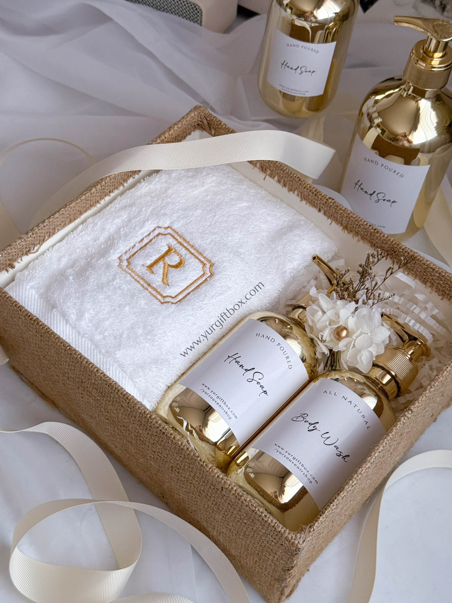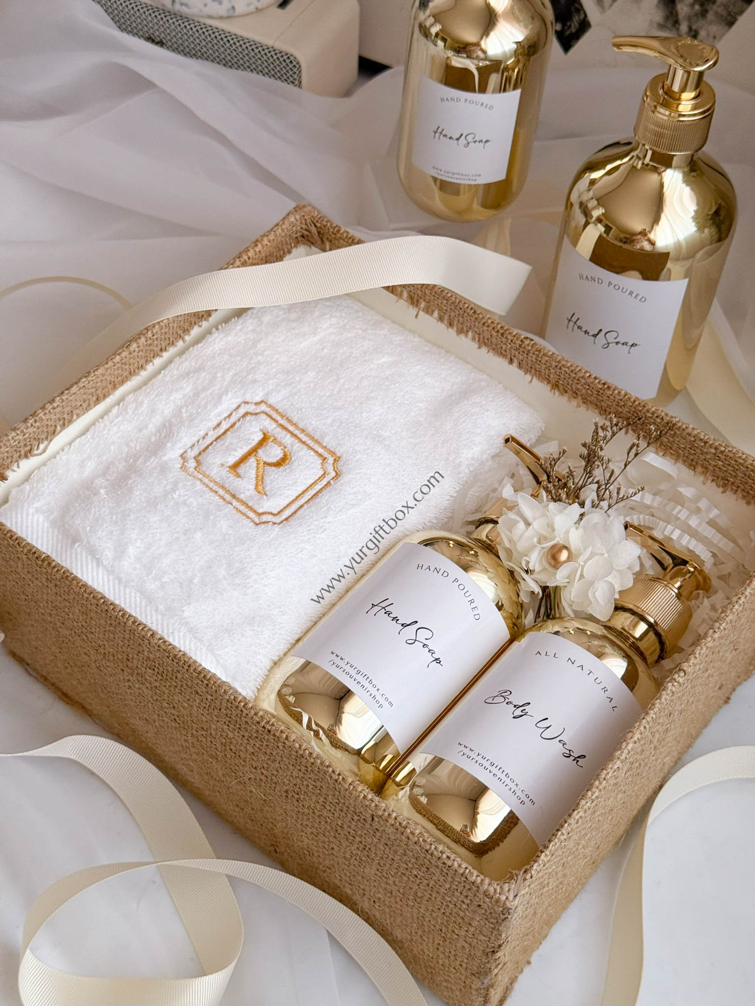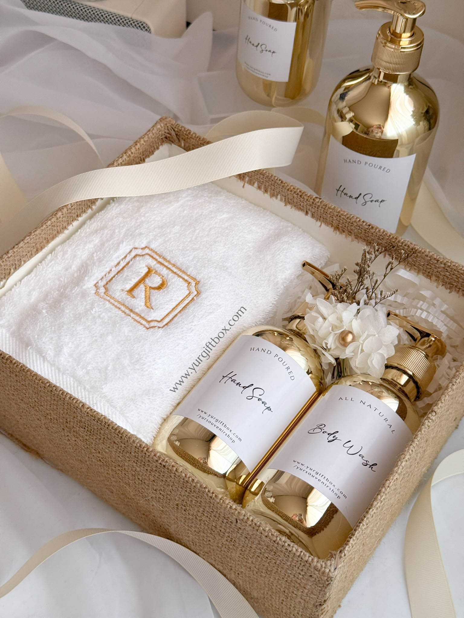 -2pcs of pump bottle in gold (in 300ml or 500ml) (filled with liquid hand soap and/or body wash)
